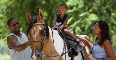 O casal da foto, Otair de Carvalho, 43, e Mabel Esteves, 38, levou o sobrinho Pedro, de 3 anos, para montar num dos cavalos da praça e apoiou a lei. “Cavalo não é meio de transporte. É para lazer. Existe caminhão para transportar carga”, disse Mabel.